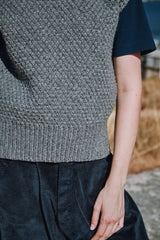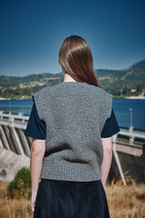 Sleeveless sweater individually knitted to order in family-run workshops in Spain where we live.