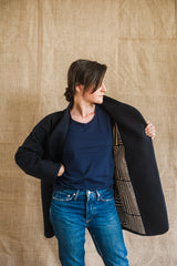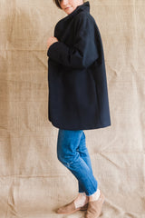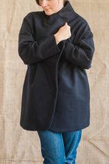 An egg-shaped, over-sized coat to keep you warm! With up-cycled Italian fabric on the outside and African print lining Moyo's coats are a treat to wear and easy to combine with most outfits. The coat closes though two hidden snap buttons and has pockets.