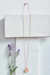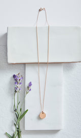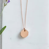 This pretty octagonal Otto Necklace is cast out of 100% recycled 9 carat rose gold giving it a satisfying weight. Set on a 50 cm chain to sit centrally on your chest and perfect for layering with Kind's Solar Necklace. A new everyday favourite to add to your collection! Engrave it with initials, a doodle, whatever you like for a personalized gift. The designer can use any font for you or even use your own handwriting. Send your engraving request to info@gatherandsee.com