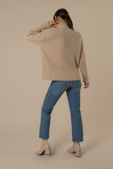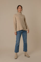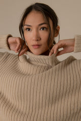A classic camel knit. Crafted from a very soft and warm alpaca-wool blend in rib-knit to increase chunkiness and with a loose silhouette and roll-neck to wrap yourself completely in warmth and comfort on casual cold days.