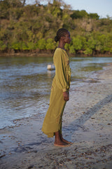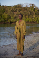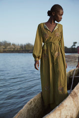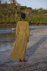 Maxi dress embroidered with unique Hamaji botanical sketch designs, these dresses are one- of-a-kind pieces. Each dress has been embroidered by a group of artisans Hamaji work closely together with in the Ngara slum of Nairobi, Kenya. By trying to encourage their creativity and artisanship, each dress directly supports them. Carefully stitched together at Hamaji's studio on the foot hills of Mt. Kenya by local seamstresses.