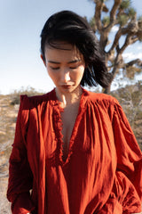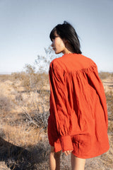 Our oversized Spirit shirt dress has a deep raw edged neckline and free flowing silhouette for ultimate ease and natural barefoot chic style.
