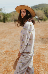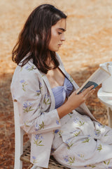 A quintessential item of the wardrobe of today, a printed blazer. This versatile piece is printed in our Sweet Sweet Lavender Print and is made in linen. Put it over a white t-shirt or a bralette and pair it with jeans or the Sweet Lavender Pants. You cant really go wrong with this easy number.