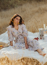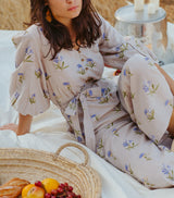 Sweet Lavender jumpsuit is an easy wear, wide legged piece made in linen. it’s printed with the Sweet lavender print. The buttons on this jumpsuit are carved out of coconut shells. Ideal for breezy days in the city and vacations. It comes with a detachable belt.