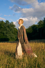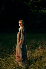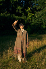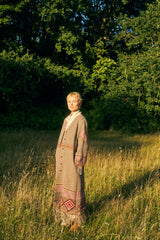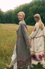 Handcrafted from indigenous wool sourced from the Gaddis, the Himalayan pastoral tribe, these coats are naturally dyed using local flora, embodying the very essence of the mountains and hand woven into these magical coats. Each woven motif tells a story, weaving the narratives of the women who craft them.