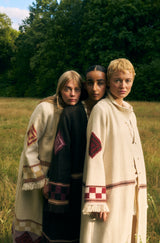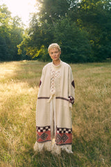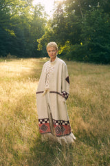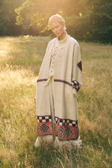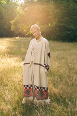 Handcrafted from indigenous wool sourced from the Gaddis, the Himalayan pastoral tribe, these coats are naturally dyed using local flora, embodying the very essence of the mountains and hand woven into these magical coats. Each woven motif tells a story, weaving the narratives of the women who craft them.