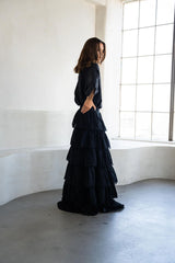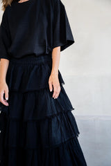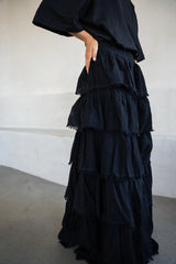 Our untamed soul skirt is a beautiful dance between whimsical romance and raw elemental minimalism. Crafted in organic cotton gauze, its multiple layers have an unfinished fringe edge. Can be worn high waisted or on the hips.