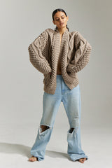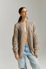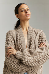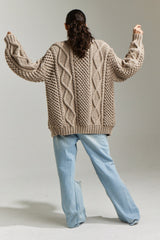 The intricate cable design is breathtaking and the comfy shape make it a cardi you never want to take off.