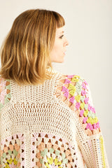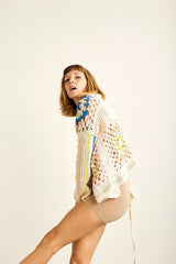 The intricate crochet design is stunning and the comfy oversized shape is flattering on every shape.