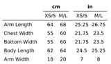 | Arm Length | 67 | 69 | 26.5 | 27.25 |