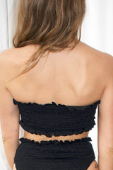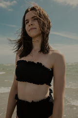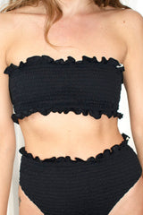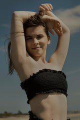 Our Rosalie Bikini Top is our classic shirred bandeau with ruffle edge and pairs perfectly with our Rosalie Bikini Bottom.