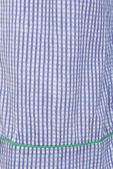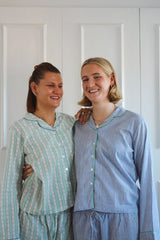 We all love a bit of gingham, but have you seen hand printed gingham before? Our two-tone blue gingham design have a contrast green piping, a modern take on a classic pyjama. All our pyjamas are handmade by artisans in Jaipur and come in a matching pyjama bag. Their oversized, boxy fit and supersoft cotton are perfect for cosy nights in. The fabric is hand printed so please allow for discrepancies in designs as each set is unique.