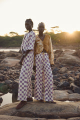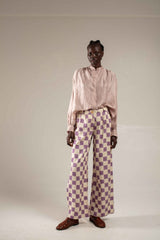 Our Painter pants feature a relaxed silhouette accentuated by a pleated front with two side pockets and a slightly bow leg shape. Made in this seasons woodblock printed organic tencel. Pair it with any of our tops to complete the look