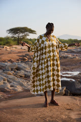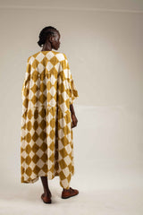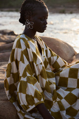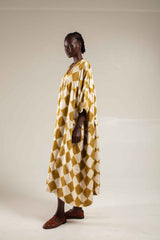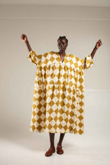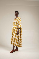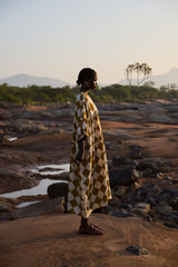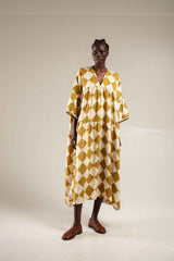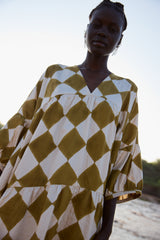 A season staple and a dress that can be worn to any occasion. The Maxi dress features a voluminous free size silhouette with tiered panels, a v neckline and 3/4 bell sleeves.