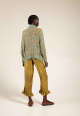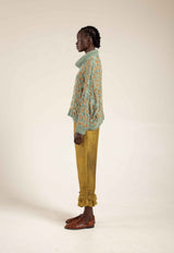 Hand knitted by local ladies on the foot hills of Mt.Kenya the Knitted Jersey features a wide long polo neck which can be worn rolled down or up. Made from two different yarns, one silk and one cotton giving the jersey its beautiful panelled features. Best styled over any of our tops and bottoms