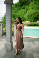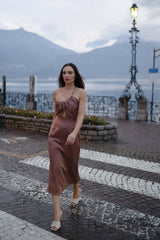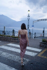 A limited edition one shoulder dress featuring ruched detailing and a delicate cut out on the bust. Cut on the bias from 100% Italian silk, for a figure-flattering sensuous drape, finished perfectly with spaghetti straps.