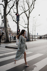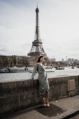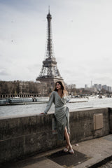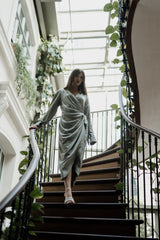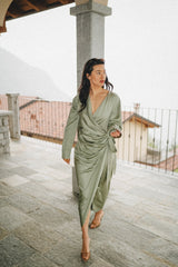 A modern take on the signature staple. Featuring a contemporary draped neckline and wrap over structure for a refined silhouette.