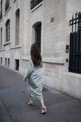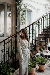 Adjustable tie closures make for a luxurious yet easy to wear approach and the split sleeve cuffs are exquisitely finished with delicate natural shell buttons, making for an effortlessly elevated look season after season.