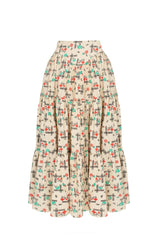 Fabric - The Campion Skirt in Vintage Hatch Print is made of handloomed cotton (not sheer) and printed by hand using plant dyes. There may be discrepancies in the print as a result of the vintage and hand-printed nature of the fabric. Very limited quantities and not repeatable. We work with textile artisans, who abide by the principle of seed to cloth using natural and traditional methods within their appellation. The fabric is grown and made from seed to fabric in India.