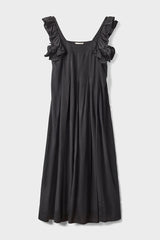 The Evie Dress is crafted from a breathable linen blend. A curved square neckline and statement ruffle sleeves add modern romance, while sewn-down pleats release into gentle volume through the midaxi-length skirt. Fully lined for a smooth silhouette.