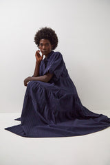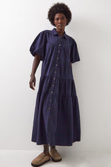 Crafted from weighty, textured cotton, the Lexa Dress is a transitional staple designed with thoughtful detail. Pintucked fabric is cut in varying directions to create subtle dimension, while bubble sleeves and an A-line tiered silhouette bring soft volume. Neat through the shoulders and bodice, it flows into a flattering midaxi length. Finished with a full coconut button-through front placket.