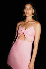 The Gabriella Mini Dress in bubblegum pink is cut to a feminine silhouette from breathable, Belgian linen. It comes with thin straps and features an adjustable front tie element, creating an alluring cutout detail. Made in Portugal, this mini dress is cut from 100% Belgian linen.