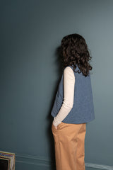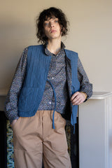 The Amy gilet in jacquard quilted Indian cotton features large rounded pockets and a tie front. It’s lined with a vintage deadstock Liberty Tana Lawn. Great for layering over a top, dress or sweater and can be worn all year round. The Liberty print lining is different for each batch. Email us if you'd like to see a picture of the lining before ordering.