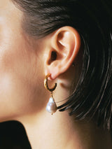 The Archaic Baroque Pearl Hoop Earrings are a perfect blend of elegance and statement design. Featuring intricately ridged hoops and adorned with stunning baroque pearls, these earrings bring a touch of timeless sophistication to any outfit. Ideal for those seeking a bold yet refined accessory.