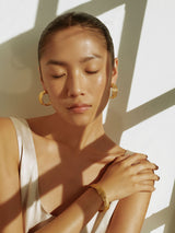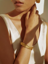 The Archaic Bracelet features a detailed, textured surface and organic lines. The cuff has an adjustable opening so it can easily fit a variety of wrist sizes. It's an elegant everyday piece, but can be elevated easily by pairing with the Archaic Long Earrings, for a bold evening look.