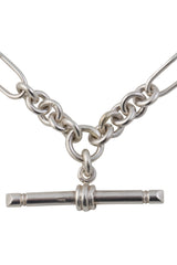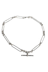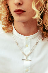 The Archibald Chain is made in part using upcycled antique stamped silver, alongside modern handmade chain. The curious timeline involved in the components of this necklace are a homage to the Albert Fob chain which this has been styled on. Traditionally the Albert chain was designed to hold pocket watches and other time-keeping devices.