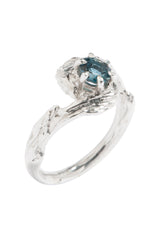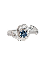 Aura is a Sterling Silver asymmetric ring featuring a London Blue Topaz center.
