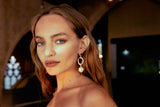 Our dazzling showstopper, this beautiful swinging pearl earring is guaranteed to capture the crowds. She is made of three parts, all with flowing waxy flowers scattered across the surface, and woven with Kyivian flowers. Thee Basanta earrings are complete with a set of natural baroque pearl discs and bright synthetic rubies.
