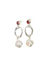 Akoya and Synthetic ruby earrings to dance in, 100% recycled Sterling Silver.