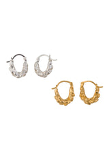 Delicate Earring Huggies with an organic woven texture and high polish interior. Feel victorious in these dainty earrings. The Caesar Huggies are defined by a fine angular pattern that cascades across the front. Complete with esay-to-wear hinge clasp findings. Each earring has her own subtle differences.