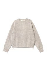 This version of Elwin's Ada crewneck sweater is made from lightweight soft grey Donegal spun lambswool with characteristic tweedy flecks of brown, white and black. A great versatile neutral shade that works well across the seasons.