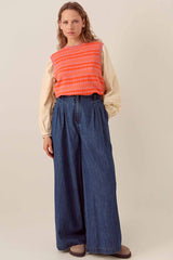 A fine knit crafted from a soft cashmere/alpaca blend, featuring an all-over fairisle design in dusty-rose, rich contrast clementine. Ribbing at the neckline, armholes and hem contribute to a relaxed fit.