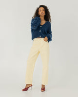 We call this cardigan Pagunda, the Lithuanian word for “lure.” In Lithuanian folklore, temptation is often cast as a force of nature - inevitable, undeniable. Crafted from mohair wool certified by the Responsible Wool Standard and silk, this navy knit is soft yet enduring. Its cable sleeves create an intricate rhythm, while the easy, hip-length fit makes it as wearable as it is alluring.