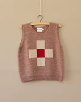 Our knitted Red Cross Vest is knitted in dusk pink with hints of oatmeal and a pop of red. It's a relaxed style with dropped armholes, to give plenty of room when wearing with shirts and sleeved dresses. Inspired by quintessential red gingham fabric, this woollen vest is the perfect piece for layering and adding extra warmth during transitional seasons, British holidays, picnic outings, camping trips and cool Summer evenings.