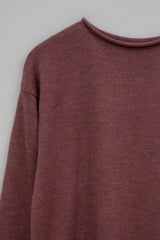 This is an elegant, cosseting shape, loose and easy to wear with off the shoulder full length sleeves and a delicate rolled neckline.