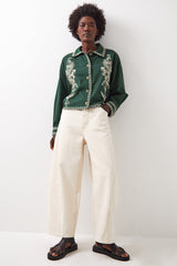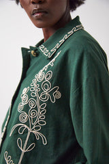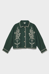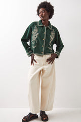The Arnella Embroidered Jacket - crafted from Cotton. Featuring detailed floral ecru embroidery. Boxy fit. Tortoise shell button details. Wear on it's own or style with the matching Arnella Trousers.