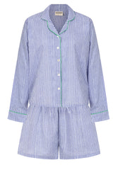 We all love a bit of gingham, but have you seen hand printed gingham before? Our two-tone blue gingham design have a contrast green piping, a modern take on a classic pyjama. All our pyjamas are handmade by artisans in Jaipur and come in a matching pyjama bag. Their oversized, boxy fit and supersoft cotton are perfect for cosy nights in. The fabric is hand printed so please allow for discrepancies in designs as each set is unique.