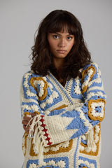 Lovingly hand-crocheted by masterful women artisans in Peru, each Farrah is a wearable work of art — adorned with vibrant, multicoloured granny square motifs, an oversized and enveloping silhouette, and crafted from an ultra-soft, luxurious blend of premium Merino wool and Peruvian Pima cotton.