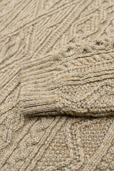 The style features intricate cable stitch patterns that highlight the rich heritage of traditional British craftsmanship.