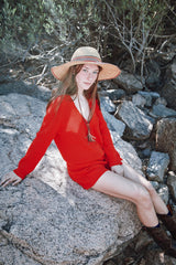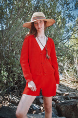 ANNA V-Neck Cardigan in Organic Cotton - Red