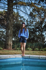 CLEMENTINE Batwing Sweater in Organic Cotton - Cyan Blue