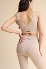 The Slip Wrap Bra is designed for all-day comfort with a super flattering wrap-front fit and medium support. Made from a buttery-soft, breathable fabric, it feels smooth against the skin while offering a sculpting yet lightweight feel. The double-layered construction provides extra coverage, while the removable cups allow for a customizable fit. Finished in a versatile neutral colourway, this go-to activewear essential is as effortless as it is functional.