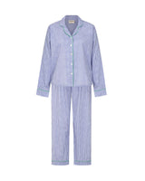 We all love a bit of gingham, but have you seen hand printed gingham before? Our two-tone blue gingham design have a contrast green piping, a modern take on a classic pyjama. All our pyjamas are handmade by artisans in Jaipur and come in a matching pyjama bag. Their oversized, boxy fit and supersoft cotton are perfect for cosy nights in. The fabric is hand printed so please allow for discrepancies in designs as each set is unique.