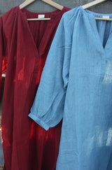 * Please note that the fabric is hand spun and hand dyed therefore each dress is one of a kind and slight variations will occur. Due to the dye being natural and completely free from chemicals the colour will also slightly change with wear and washing over time. We think this only adds to it's beauty.