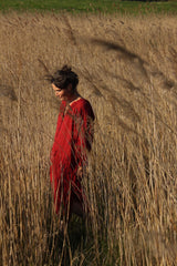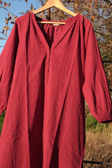 The beautiful hand woven cotton Grace Dress in Earth Red