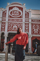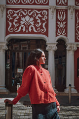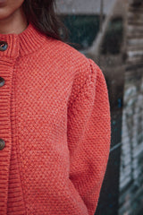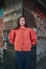 ANAIS Puff Sleeve Cardigan in Merino Wool - Coral